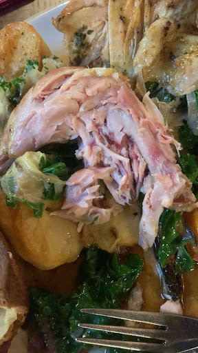 We waited 40 minutes for our roast to arrive and when it arrived it was stone cold, on the plate there was one rock solid and cold carrot and one soft and chewy (and cold) parsnip. I was really looking forward to the roast potatoes as had previously seen someone on Instagram saying they were the best potatoes they ever had, ours unfortunately were extremely pale and soft with absolutely no crunch and hard on the inside. We asked if there was any way we could have our food heated as it was genuinely cold, they took it away and microwaved it no bother. However the microwave had caused the gravy to dry up and werenāt offered any extra, we did ask for more which we were given after a short wait.