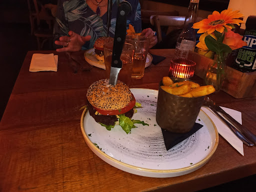 Menu is limited, and does not explain the dishes. Waitress was blunt, I enquired what came with my dish (roast pork belly) and she stated mash of course !, there was no alternative. I called her back to ask if there was any veg with my dish, , which I hoped there was for £12.50) and she repeated there was mash and pointed to lady sat opposite who had just been served the same dish. I was then advised of I wanted a side of roast.veg, I could pay £3.50 more. When I arrived it had more potatoes,a few slices of carrot and parsnip all boiled defiantly not roasted. The main was a huge bowl of mash, a large piece of pork belly fat, with about 1inch.of meat and a little grave already poured on the dish, none extra. Yes it all tasted very.nice, but it was overwhelmed by the mash and lack of gravy. My husband had a £16.steak, which was served with chips and peas and salad, it was cold. The plate was cold and the food had gone cold. We paid £9 each for a glass of wine which was not great. There was only 2 desert choices, so we opted for coffee and asked for the bill ( which we ended up going to the bar to pay, 20 mins later) err still had to stand and wait. Mens toilets were dirty! Ladies clean but...