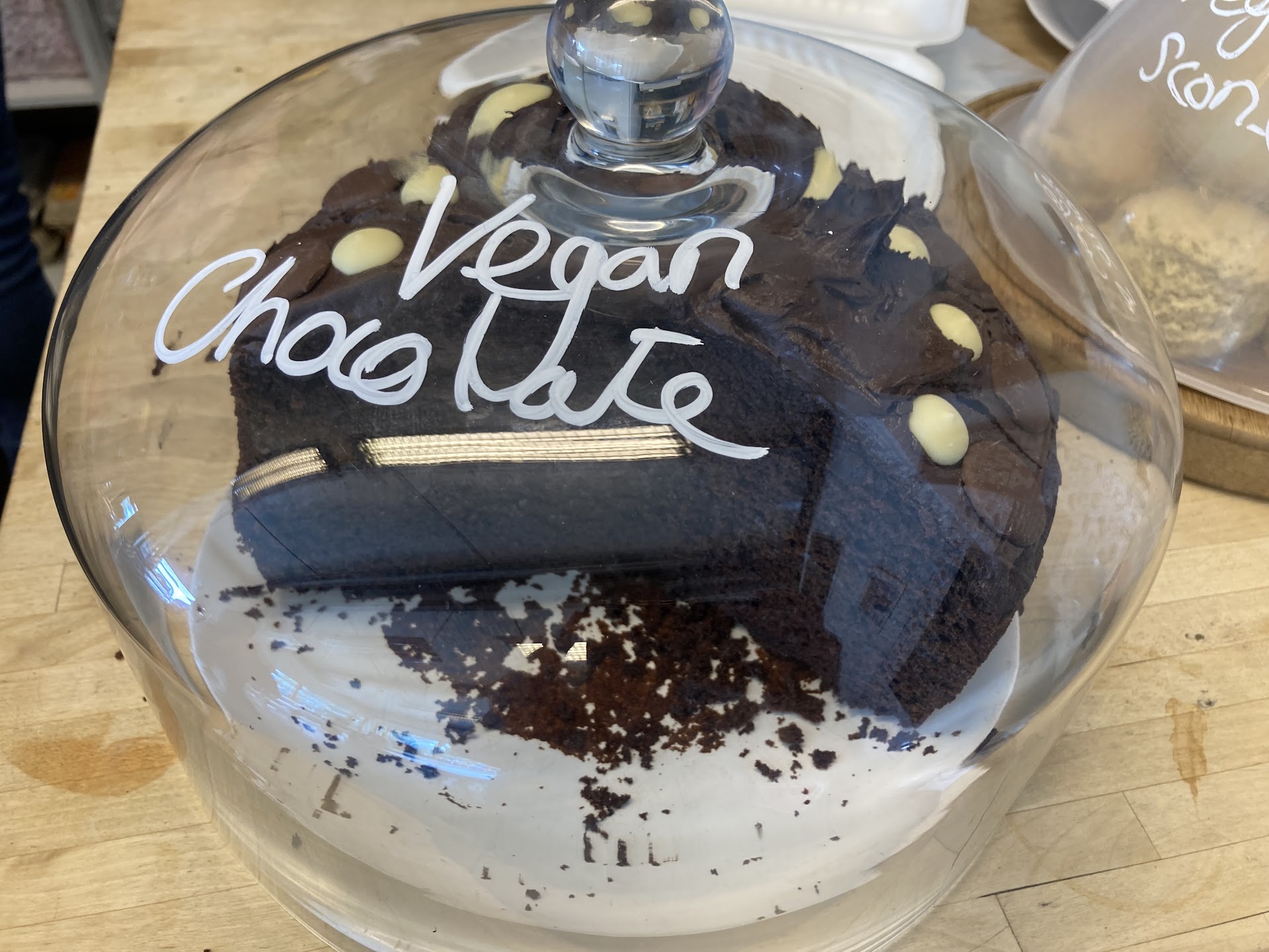 There has been at least one epic vegan cake on the counter for our last 3 visits. Banana bread with peanut butter frosting, rhubarb jam sponge with custard icing and then this chocolate dream on Easter Sunday.