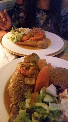 Tasty Caribbean food served with a soup that is to die for.
