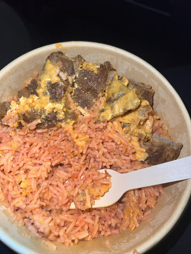 Unfortunately, the food was a massive letdown. The Jollof rice was just orange-colored white rice—no depth of flavor, no smokiness, nothing that resembled authentic Jollof. The suya, which I was most excited for, lacked any of the signature smoky, spicy flavors and was instead smothered in a peanut sauce. I was completely confused. While I appreciate the clear signage about nut allergies, I never imagined that suya and Jollof rice would come drenched in peanut sauce—it’s not something I’ve ever experienced before.
