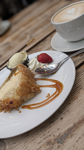 Read moreWe popped in for some crepes on pancake day. We ordered two mocktails (apple & cherry and the strawberry one) and two crepes, one with banantella and rocher (so this is sliced banana, nutella, ice cream and rocher chocolate on top!) , and a bueno one (this came with chocolate, white chocolate, ice cream, cream and 2 buenos on top!). The place is very nice, looks recently renovated, with comfortable, nice looking furniture, a green wall feature and a big indoor tree, along with some other interesting interior details. The service is very attentive and friendly. They have an extensive offering of crepes, waffles, american pancakes, french toast, baked to order cookie dough, a wide selection of cakes, sandwiches and pastries. Nice place to sit for a quick coffee, a casual dessert after dinner nearby or a group gathering. They have several 4 and 6 seater tables, booths, a large 10 people table and another 12 ish coherent table. Everything is traditional milk, butter, sugar made so we left on a very high sugar high. It's not going to be our go-to place as they dont have gluten free, vegan or low sugar offerings yet, but we will probably be back to try the french toast and the Kashmiri pin chai one Saturday. I was told they open 8 am every day so I think opening hours are...