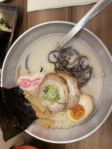 I also wanted something hot, so we ordered karaage chicken, stir-fried vegetables, and tonkotsu ramen. The karaage reminded me of chicken nuggets – but in a better way. It was nicely seasoned with a tender inside, almost like a higher-quality version of chicken nuggets.