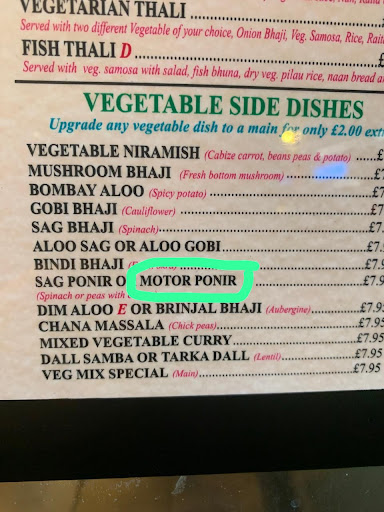 What a horrific experience. Honestly this restaurant should be reported to the police. Firstly, this is not a genuine Indian restaurant. It is a Bangladeshi restaurant masquerading as Indian. (Quick tip: Whenever you see "Motor" Ponir or "Motor" Paneer on the Menu at any Indian restaurant, turn around and run away without looking back). I bought 4 dishes, and not one of them was edible. I had to throw all of it away when I reached home.