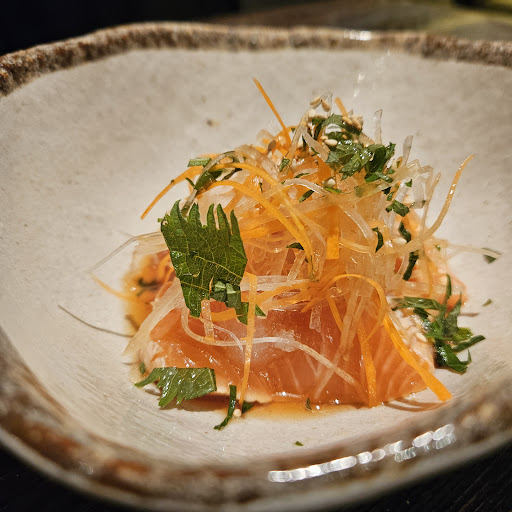 Each time weâve had the salmon, seabass and sea bream sashimi, as well as the Kinpira burdock dish. Some of the freshest and delicious fish weâve had in London. The Chefâs standards are impeccable. The sea bass tempura was so light and not oily and the prawn and asparagus with the yuzu koshou sauce was again delicious.