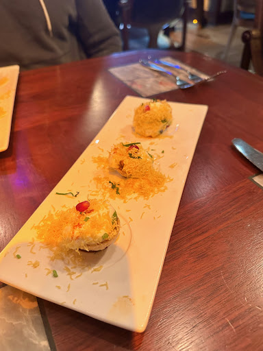 We chose cocktails without alcohol. All of them were great. The lychee one was fruity. The best was the cucumber based drink, khush cooler, which was very refreshing. The one with bay leaf was stronger taste compared to the others. One of us haf mango lassi, which was alright. For food, we went for veg and normal tasting menus. The raj kachoris were the best part of the whole menu. Perfect Chaat taste with the right balance of taste and texture. They were right size for a bite. The sheekh kabab had Malai filling which was good because otherwise the outer layer of it was a little too dry. I am a huge fan of pav bhaji, so I have high expectations. Here the bhaji was a little bland, pav was ok but burnt on the edges. The paneer was so soft, it melted in the mouth. It was a little too tangy, probably because of the curd. The biryani was alright, the taste was not uniform across. I have had better Biryanis in London. The palak/spinach was quite juicy and rich. Perfect with the roti/naan. The dal was a little different, it had a south Indian touch to the flavour. I prefer dal with the uniform consistency, this one had distinct liquid part and solid part. The taste eas good though. By the time the deserts came, most of us were full. The mango kulfi was mild but the gulab jamun was quite tasty and had a good bite. They were warm as well so a good finish to a rest meal. The service was ok, nothing so good or bad that I would remember it. Overall, we enjoyed the food and would definitely recommend to friends...
