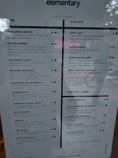 Seating is limited so that’s why it can take a long time for you to come off the waitlist from Elementary. Go early. Go on a weeknight. Great customer service. They’ll put your drink in a fridge beneath the counter if you haven’t touched it for a while just so it’s nice and chilled as if fresh when you sip on it after a while.