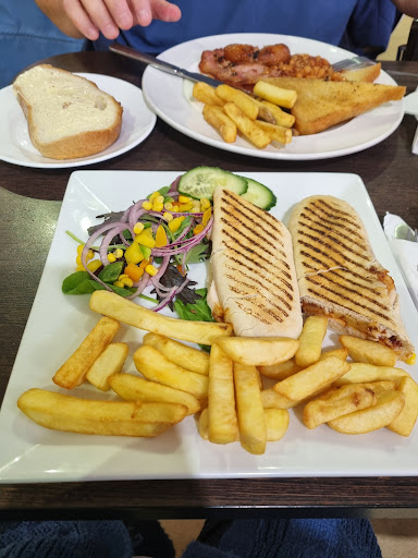 Absolutely loved this cafe, clean, staff very friendly, menu was easy to read and such a big choice of food. And although it was quite busy, there was so much space it didn't feel over crowded. My husband had a cooked breakfast, and I had a bbq chicken panini, which came with a bit of salad on the side, I had chips as an extra and that was an extra £2, but they was really nice chips and well worth the extra money. It was all cooked fresh, and we didn't have to wait long for the food to arrive. It come to just under £20 for the two meals, but as said I did have extra chips, and a lucozade, but me and my husband both really enjoyed the food and thought it was worth the money. We will definitely be...