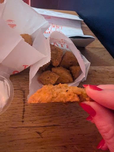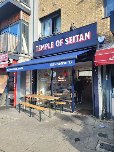 Temple of Seitan is my favourite fast food chain and their Hackney location lived up to my high expectations. This location is super convenient being just a few minutes walk from Hackney Central. Note that as with many of their spots it does not have a large amount of seating. I started off with my favourite burger the Nashville Hot. This batter I think steals the show because the seasoning is simply amazing. It gives the heat you need that perfectly compliments every other aspect of the burger. As a side I also had the Mac & Cheese, I would say to anyone don't be afraid. I genuinely dislike vegan cheese and remove it from any dish I find it on but this is different. The sauce is creamy and tart without the awful vegan cheese after taste, I also love the smokey bacon which really pulls it together. I also ordered the Lemon Pepper Wings out of pure gluttony and had no regrets. The seasoning was phenominal and worked so well with the fibrous seitan and crunchy batter. I then finished it off with a delicious biscoff shake which never disappoints, super creamy and delicious. Overall all I would definitely advise giving Temple of Seitan a go regardless of location and see how good it is...