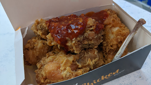 Read moreChicken was okay. Good level of crispiness in terms of the coating, however could do with a bit more spices to have a greater depth of flavour. However, the customer service is dreadful, staff sitting on chair and casually talking on the phone to a friend, didn't listen carefully to my order and refused to let me pour the chilli sauce on my own, he did it and coated one wing entirely whereas I want it in the corner. Very...