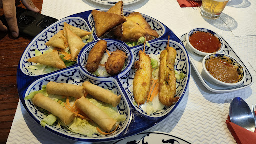 Read moreI came here on a friday night with a friend, to try it out after a recommendation. We didn't book and we advised to try the set menu for 2. I have to say it was a great recommendation. There wasn't anyone else in the restaurant but had a steady flow of take aways. The guy serving us was nice and friendly and the food didn't take too long to arrive. You get a lot of food for the money and a nice selection. You get a platter of starters at the beginning of your meal. All were nice enough. Its a halal restaurant and they don't serve pork which my friend appreciated. The starters came with a penut and sweet chilli sauce. For mains you get a pad thai, 2 rice, thai green curry a lamb dish and a vegetable stir fried side. All were really tasty we both really enjoyed all the main. We were completely stuffed and will definitely come back. We grabbed a Thai beer and some tap water and was easy enough to park round the back near the sainsburys carpark. Give it a try and defo go for the set menu for 2 seemed like great value, we...