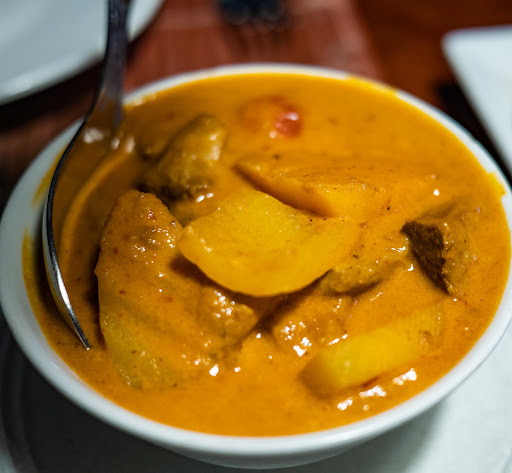 Beef Red curry - An amazing creamy coconut and spicy taste. Not too spicy and beef perfectly cooked. If you want more spice go for the Lamb Mussaman.