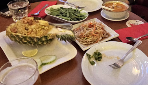 We ordered the pineapple fried rice which lacked flavour and the rice was too dry, the morning glory was undercooked and again had no flavour in it whatsoever, Tom yum had no herbs in it and was quite blend….a pack of lobo pre-mixed Tom yum paste would have tasted better. We did enjoy the green papaya salad, it was definitely the highlight of the meal.