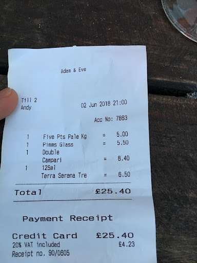 Ā Ā Ā Read moreSo I love Adam and Eve itās a great pub itās beautiful inside. However they have this new Thai Street food menu which we tried today. Erm really disappointed. Itās very limited. However the portion sizes for what the mark up price is very stingy. We had the fried squid as a starter and I swear they used a razor blade to get that squid as thin as they could possibly get away with. Then we had the deep fried chicken wings we totally left that the crust was so thick and soaked up so much oil we all left it. On the menu it really bigs up Thai french fries emphasising theyāre double crispy with this and that on top. They were just as crisp as normal french fries, so nothing special. Then we had some noodle thing with tofu quite bland. Massaman curry was absolutely gorgeous but you had to order rice separate and the potion of rice is tiny and there was another dish canāt remember name but it was Ā£11 on menu it was so small it came on a side plate. The portions are very very very stingy thereās some flavour there in some dishes it looks better than it tastes. We were on the Eat out to help out scheme and the bill came to Ā£60 ish odd and cost Ā£30 so we were overall happy if we actually had to pay Ā£60 for it then no we wouldnāt got back. Itās my local the menu before was amazing and the roast dinner has always been next level off the scale! Hopefully this will be intergrated back. Itās a beautiful pub and the staff are lovely worth a visit! Better with the...