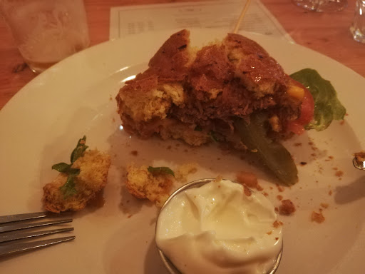 Read moreService was okay by waitress, but food was sooooo slow. There was hardly anyone else in there and it took about 30 mins for our starter which was £7 for ONE mushroom and a couple of leaves of spinach which was ridiculous. They obviously needed more staff on as we could see our starter had come to the pass and the waitress was standing right next to it sorting out a bill discrepancy for ages and we could see our starter getting cold while she did something else. Not her fault as she clearly wanted to sort out what she was doing first, but shouldn't be at the expense of a customers hot food. Hardly any choice at all for vegetarians, and menu is actually pretty limited anyway. Boyfriend ordered the beef burger which he said wasn't nice and didn't come with all the things it said it would. Chips were frozen and horrible, and I had sweet potato fries which were also frozen and not nice. They forgot my salad as well which was a starter size £6.50 - literally the opposite of what you'd expect. It suggested warm salad but it was cold and had a couple of bits of stilton and walnuts - generally unpleasant so I didn't eat it and sent it back as it took too long to arrive. I wouldn't normally do this but I was so starving that my chips had filled me up. £13 for my boyfriends burger and chips is steep for what it was, but the starter was just a joke. Seriously £7 for one small mushroom. They must have new kitchen staff as I've been before and it was really nice!! The waitress was kind enough to take the service charge and salad off but still came to £29 with one beer for some pretty substandard food....