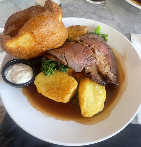 The pork was the best tasting of all the plates but the fat was soggy. The beef was the worst part as it was very overdone and chewy. Though the sides and accompaniments were not good either. Cauliflower cheese was bland and not browned, roast potatoes were 15 mins in the oven away from being crispy. Extra gravy for 5 of us came in a tiny gravy boat, and the mustard we asked for came a teaspoon at a time. Pigs in blankets were the cheapest kind of sausages and only partially crisped.