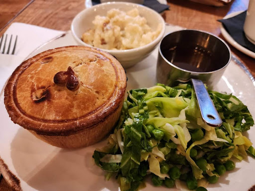 Read morePlace was practically empty. We ordered a steak and ale pie and a 3 bird roast pie and a pint and Half of real ales. The steak and ale pie was very salty, the veg miserable looking and undercooked . However the worst was the 3 bird roast when I cut in there was a puddle of gravy, carrots and a few bits if stringy meat covering the base if the pie, but not real meat. I went up to the bar and asked the bar man to look at it. He asked if it was like that from the start!! Then apogised and said he would replace it.My guest had finished eating what he could of his meal before mine eventually arrived. This time there was a few chunks of what looked like chicken, but not an adequate amount to justify the price or to qualify as a meat pie. We should have stuck with the salmon fillet . The beer sadly was also flat and tasteless, would never have said it was prize winning, we didn't order anymore. Won't be going there again, it was also pretty expensive for what they are offering.The staff were nice. Shame, spoiled a special day out! Nt...