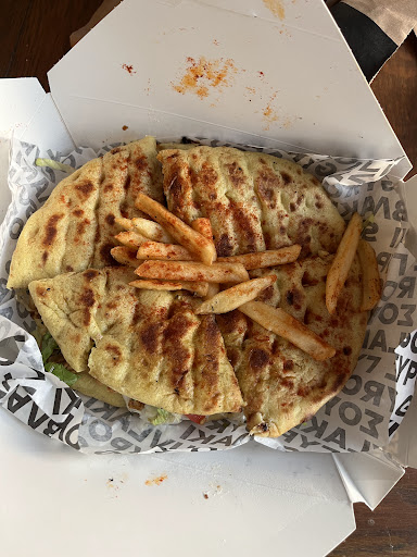 Read moreWe ordered three pork gyros souvlaki that took apx 40 minutes. The restaurant was empty and there were no deliveroo drivers anywhere in sight. There were three people in the kitchen / assembly line and unless people were being trained or there was a mechanical issue, there was absolutely no reason for three wraps to take this long. I'm assuming that they started assembling the wraps without having the fries ready because the fries were actually really nice, crispy and hot but the rest was between cold and lukewarm. Tzatziki didn't taste like much and the pork was alright but the temperature killed it. Pita was dry and crumbly and almost fell apart. The wrap itself was more like a taco instead of a souvlaki, I'm guessing that they'd have to start over if they tried to wrap it properly because the pita was so dry. Also while waiting, I noticed the shop was really dirty. There were a bunch of tables with trays and napkins from previous customers and the floor was pretty grim and sticky. I don't think I'd ever sit in, but maybe I'll give it another try on a busier day when they have they're top...