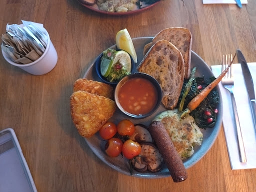 Where to start! The service - attentive but still casual, really thoughtful, seemingly natural hospitality skills. Cleanliness - the cutlery was so shiny, I could have used it as a mirror! The side of fruit! It was like a little art piece, not a side! So clean and fresh! Beautiful selection of fruits and soo beautifully presented. At first I was wondering should I order it, because some places if you get chopped fruit it doesnât seem the freshest. Iâm so glad I got it, I was like âwhoever made this has finesse and quality!â The dishes in which it was presented were beautiful dimensions, the perfect size and thickness! The patterns and colours were beautiful and again, so shiny and clean. Love how the menu has such a selection of sides. Was there once before and was able to just get 1 vegan sausage :) Felt happily catered for as a vegan even though itâs not a vegan cafe. Oh and where Iâm from, loads of cafes donât do soya milk anymore as they find oat most popular, donât know if London has the same issue but was definitely glad to see this cafe had soya milk. And rooibos tea :) Lovely homely place with staff who obviously care and put such excellent care in to the whole thing...