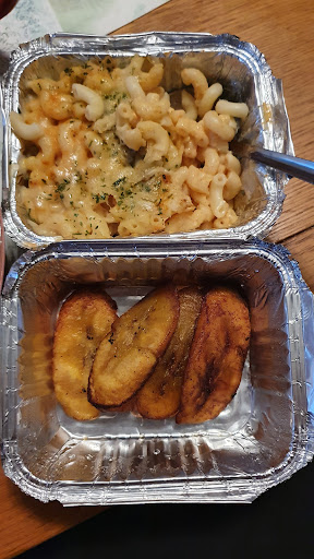 I ordered a medium jerk chicken with white rice, no pasta and a brown stewed chicken with rice and peas plus the pasta and fried plaintain.