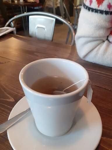Three stars for the young staff, we were served by the nice guy with dark wavy hair. We had a chicken caesar sandwich and a brie bacon toastie, very nice. But the coffee was too strong and couldn't drink it so asked for a tea. But got half a cup of hot water with a teabag on the side. Oh well! And why the odd way that the short menu is handwritten and clipped on a board???? When it changes to lunch they all get collected and replaced with another handwritten lunch menu on another board. Strange why not just one menu typed up? Could do with brightening up a bit too maybe small flowers on the table and some pictures of...