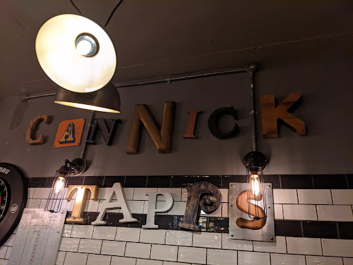This is quite an interesting pub perfectly situated right in front of a City of London station. It is underground. The atmosphere is great. Good lighting!