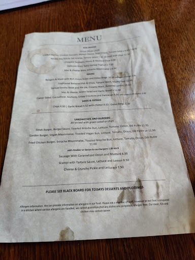 Some of our team ordered food however it would only appear two at a time. Check out the filthy menu photo (attached). Is there no pride? The ladies had ordered salads and when they asked for dressing they were told they have salt. The pub had no dressing other than old rancid malt vinegar with blobs of whatever in the bottle (attached). How can any restaurant offer a dry salad and no dressing? Many of us did not eat and waited until we went to another location.