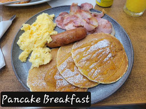 Read moreSmall looking dinner type place. People were lined up to place their order at the counter before sitting down. We sat down first, and a person took our order at the table. He then left carbon copies of our orders on the table. My husband had the Olympic Breakfast, which had a lot of beans, mushrooms, eggs, tomatoes, and sausage. I ordered a pancake breakfast that had three cakes with syrup on top, scrambled eggs, ham, and sausage. My child had a cheeseburger and fries. I would love to give this place more stars, but the food was bland to me. I asked for more syrup for my basic pancakes to give it more taste, but it didn't help. I at least had ketchup to add to my eggs. I thought it was just me, but my husband said he needed to add hot sauce to his meal. Even the orange juice didn't taste like oranges. The server was hard working and nice. Locals seem to...
