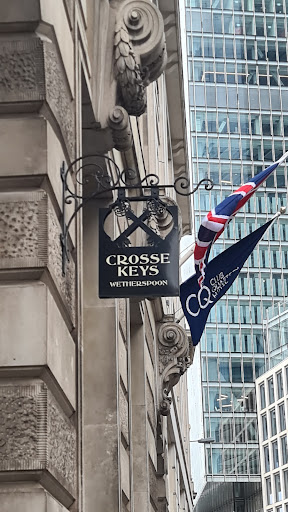 🚇Monument 🍺 £4.89 Carlsberg ❤️ A magnificent City Wetherspoons pub. . The Crosse Keys is located in the heart of The City of London just opposite glorious Leadenhall Market. The nearest tube is Monument, Bank station is also close by. . This grand Wetherspoon’s pub opened in June 1999 in a former Hong Kong and Shanghai Bank. Designed by W Campbell Jones, this Grade II-listed building opened in 1913 and featured the largest banking floor in the City at the time. This pub takes its name from The original Crosse Keys pub that stood on this site, the pub was destroyed in 1666 in the great fire of London then rebuilt and burned down again in 1734. . The interior of this pub is as grand a place that you’ll ever drink a pint in. Wetherspoons retained much of the original opulent interior, including marble pillars and fireplaces and a magnificent glass dome above the stairwell. Other standout features are the light fixtures and the beautiful curved servery at the far end of the bar. . Like the pub, the beer choice here is vast. There are multiple cask ales, a few craft beers and a host of familiar favourites. I took it easy and ordered a Carlsberg, my pint was well kept and cost just under a fiver. There is the usual extensive food menu available, Fish & Chips costs £10.60. . I arrived at 4pm on a Saturday afternoon and the pub was absolutely packed. I was lucky enough to find a seat near the entrance to take stock of this behemoth of a boozer. There are no TV’s or soundtrack, so all you could hear was a wall of sound of conversations that carried across this impressive setting. . You can say what you want about Wetherspoons pubs but the do create some wonderful boozers in stunning locations. . ℹ️ Info correct on visiting 08.04.23