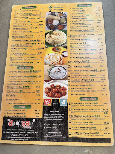 Read moreThis has to be one of the best South Indian Vegetarian restaurant I have been to in Greater London. We spent a wonderful afternoon at Painshill and after having walked for hours in those beautiful gardens, we were quite hungry and wanted to find a place nearby to eat. Since one of us was vegetarian and another craved Dosa, we drove to The DOSA Company where we had a delightful hour of gastronomic experience. The menu looked promising and the staff were extremely warm. For a table of four we ordered Gobi 65 and Tandoori Paneer Tikka for starters followed by Choley Bhatura, Fusion Mysore Masala Dosa and Cheese Dosa. I cannot complain about any of those dishes that were served to us. The Tandoori Paneer Tikka was so good that we had to order it the second time and the Fusion Mysore Masala Dosa was a treat to the taste buds. The service was excellent and quick. If you like paan, do try their paan milkshake. It’s excellent. We managed to spill it the first time (our fault) but we were given another one for which they didn’t charge us. That’s the level of hospitality you can expect in this amazing place. We loved their filter coffee and the paan on our way out. Highly recommended if you are in the neighbourhood. Good food, generous portions and fantastic service. Shiva, who looked after us during our dinner, was super polite and made our visit special. Although we live miles away in Kent, we will definitely find an excuse to...