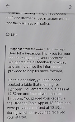 Unfortunately your reactive, knee jerk response to my review shows your inexperience in customer care. I am a co-owner of an award winning Cafe Bistro with 25 years experience in the catering industry. I reply to all of our negative reviews with empathy, compassion and a plan of action to put right what wrong has been highlighted. It's what the business and customer needs.