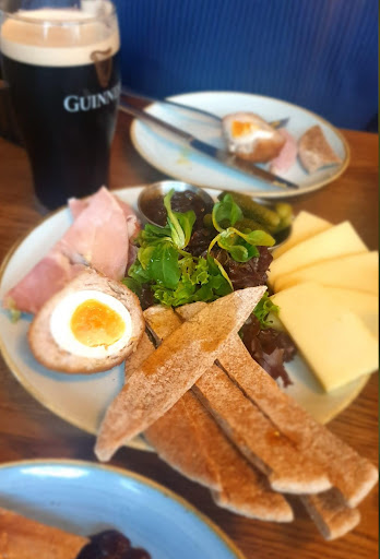 When our food arrived, we were pleasantly surprised by the generous portion size. We opted for the sharing plate of Ploughman’s, which included a scrumptious Scotch egg that was cooked to perfection. The flavors were delightful, and there was plenty of food to satisfy our appetites.
