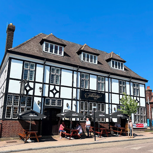 The Fellowship Inn is located on the edge of the Bellingham Estate, at the southern end of Catford in Southeast London. The nearest station is Bellingham which is situated to the right of the pub.