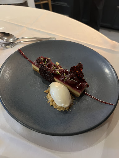 Read moreEven though we tried to leave any prejudice about gourmet experience behind, and despite being aware of what we were going to, the size of the dishes served still managed to dissapoint us. If it hadn't been because of the cheese course we ordered as an extra to the 5 course menu for each, we would have walked out of the place hungry. I understand that the focus is in the tasting experience, but other than the lamb course and desserts, the dishes served weren't even remotely amazing, and what drawed the attention about them was how some of the ingredients were added with the apparent and sole purpose of making the description of the course larger (i.e. black olive, and there were literally two thin slices of an olive...?) to the point it was silly. Like, why would you serve a dish with a quarter of a soft boiled egg, or one single small mollusc? I don't think it would hurt them to increase the size at least so that the sum of the five courses would make up for a proper, normal dinner so that an average person would be satisfied. Two other things that bothered us: the long wait between courses (the dinner took us 2 hours and a half due to long waits mainly), and that the waiter stood right next to our table chatting with the people on the adjancet table often and for way too long, which felt a bit invasive and uncorfomtable. What we enjoyed the most were the lamb course, the dessert and the cheese board. As an overall, I think it is fine for one time, but wouldn't go...
