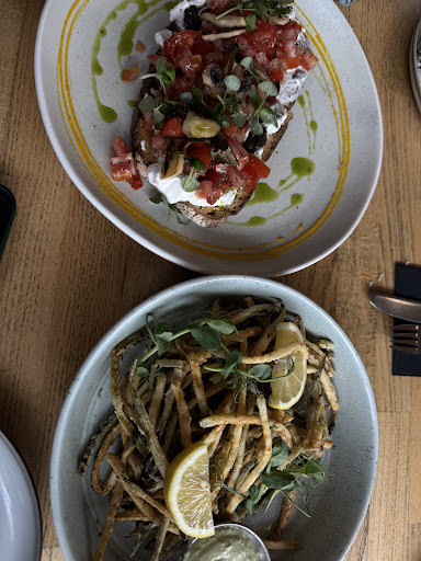 All quite disappointing really: couldn't understand straight-forward request for apple juice with a bit of tap water to top it up. I explained it twice. I got given two separate drinks and had to pour the water myself causing splashes. although it was almost empty, when my friend arrived it took ages for our order to be taken. she brought tea for my friend who noticed it looked like black tea not green tea which she had ordered, pointing this out. Waitress then argued it was green tea. It was clearly black tea. We went back and forth until i suggested she smelled it. No apology, just took it away and then brought the correct one saying boxes got mixed up. we both ordered shakshuka but were a bit surprised that when it arrived it did not contain two key items that had been listed on the menu: halloumi and chick peas. Instead there was feta and no obvious substitute for the chick peas. We flagged this and she explained it away by saying that they had a different chef. Now, really if a menu states specific ingredients, especially ones like halloumi which really is quite a distinctive item, you either ensure the chef provides those ingredients in their version of shakshuka or you change the info on the menu. Feta is also very distinctive item and some people just don't like goats cheese. Again, no apology. She offered to change the dish for something else without asking what we might want or even suggesting that they grill a bit of halloumi and add it. We said no because we'd been waiting quite a while for it and I did need to crack on with my day afterwards. basically the shakshuka, as a result, was really not very filling. Not a generous portion anyway, with two very small slices of toast to accompany what was basically two small baked eggs with a small dish of slightly spicy tomato& pepper sauce sprinkled with bits of feta. I was hungry only two hours later. for an apple juice, a cup of green tea and two inadequate shakshuka dishes we paid £31.50. Which really is taking the Mickey to be honest. No offer to reduce the bill or add something in goodwill.