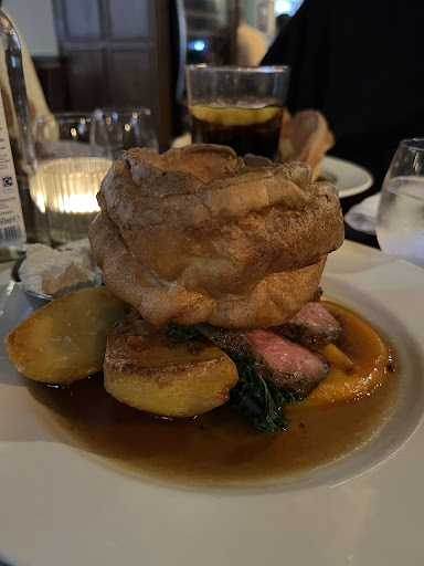So I definitely cannot recommend Sunday roast based on this experience, especially considering the 26 quid price. But we did spend almost 6 hours visiting in the comfortable and atmospheric surroundings without being chivvied on or even bothered to pay the bill until we left - although the service charge was not optional and I was definitely planning to reject it. Finally, a side door was opened later in the afternoon which blew very cold air directly at us for the remainder of the stay and that possibly encouraged us to leave earlier than we might have.