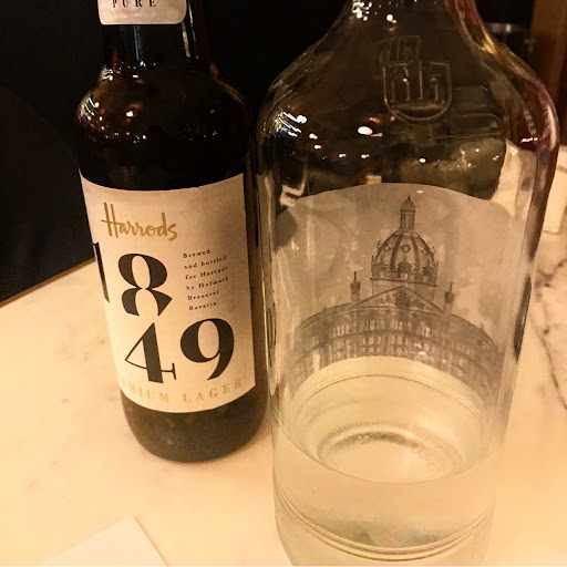 For my aperitif, I selected a Moët & Chandon Rosé Impérial, which was priced at £21. Given the prestige of Harrods, I expected a refined presentation. However, the glass in which it was served bore such evident water stains that they were easily captured in a simple photograph—something quite surprising for an establishment of this stature.