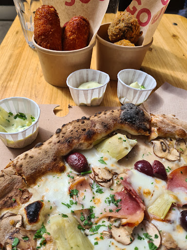 This place just opened, lots of outdoor seating, the pizza is thin crust cooked in a proper pizza oven.