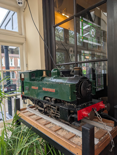 Read moreThis is a great pub for families, and dogs! It was full of people and furry companions on Sunday at 3pm, lots of happy tots running round while mum and dads were having wines and beers; loads of seating in various areas, looked unofficially like couples and folk there for a quieter time sat out front, while families sat in the conservatory and beer garden. Couldn’t see if the mini train was running. The food was super slow to come (30-40 minutes) but it was really notably delicious and around £17 for a main plate. The selection of alcoholic and non alcoholic drinks was seriously impressive. The staff were very friendly, particularly the barmaid with the blonde shaved head and the waitress with the multicoloured hair! I would go back here but I wouldn’t take a date here as the family atmosphere definitely impacts on the ability to have a cosy or intimate conversation. But it’s a really great...