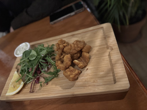 We stopped off after visiting a local market nearby! We were surprised to see a small queue, when we asked what was happening someone told us it had just opened for the day. The pub felt welcoming and the dark wooden interior was nice, the pub is well kept and clean. They have lots of seating outside too, although weather was sunny it was a bit cold so we sat indoors. They also have a large conservatory where lots of families decided to eat in there. We only sampled their hot chocolates which tasted nice we ordered them again straight away! We viewed the Sunday menu and they had various roast dinner options including a vegetarian option, I think it was a nut roast. Most of the customers were regulars and appeared to be happy with the service and their food! We also noted that although their were some small children and dogs, all were very well behaved. We noted we were sat in an Adults only area which was good so we could converse without small ears nearby. Our experience was so relaxing we intend to revisit again...