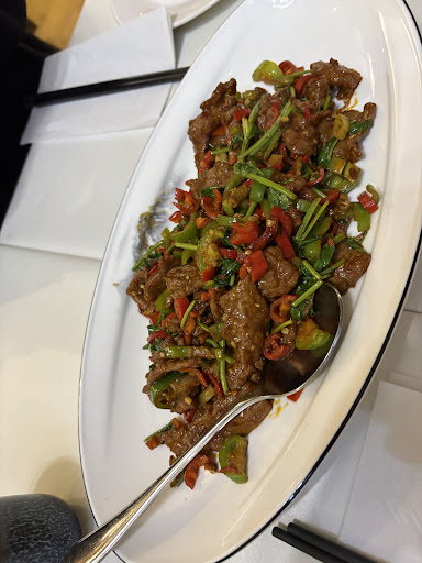 Good Hunan food, a province famous for its spicy offerings. However, there is enough on the menu to order if you are with people who can't handle spice. They do di san xian, gong bao, shrimp with asparagus and XO, and Cantonese beef hor fun which would all be suitable for diners who want to avoid heat.