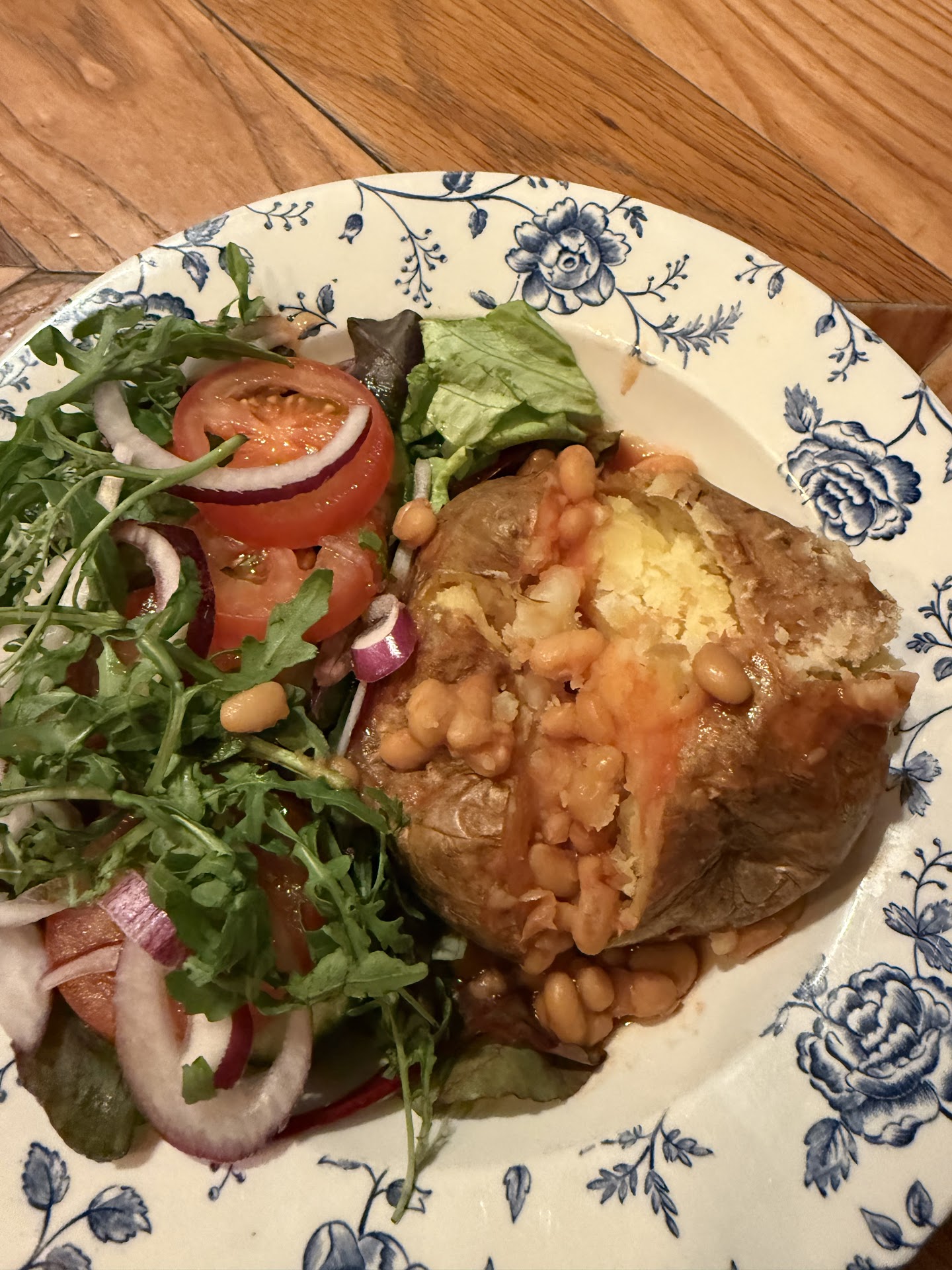 I received a minimal amount of beans on my jacket potato. My friend had a pot and I didnt. I went to the bar and showed a girl my food, I said 'sorry I think they didnt give me enough beans' thinking she would say 'oops ill get some more' instead, she abruptly replied 'THATS PORTION SIZE' to which I replied 'Theres like 10 beans' and she said 'I think youre being over dramatic there's more than that', at this point I wondered what I was meant to say. I said 'I haven't eaten any yet and look' she said 'I can take it to the kitchen but they will just say the same as me', I cannot explain how rude she was to me. I replied 'id rather not send it back if thats the case' as many people wouldn't want to.
