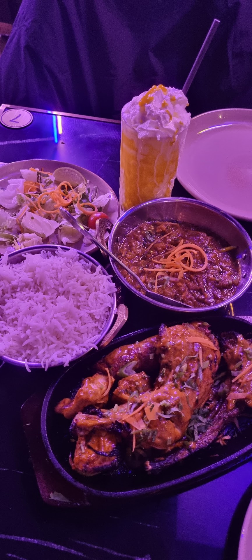 We ordered promptly as we knew there seemed to be a time limit for parking, and they said no more than 90mins at the restaurant. We ordered dynamite prawns, which were lovely and had a good kick, the bbq wings were nice too, the curries were ok, I didn't really know what to expect but decent. The lamb shank was OK, nothing special, and lacked flavour however, the gravy around it was nice. We also had a fish dish and the overall consensus of the group was that it was the nicest of all the dishes we ordered, sadly I don't eat fish so I can't give a genuine feedback.