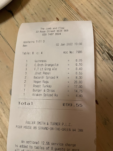 The Lamb & Flag Today Walk into The Lamb & Flag today, and youâll find a perfect blend of old and new. The low ceilings, wooden beams, and vintage dĂ©cor remain untouched, while the menu offers hearty British classicsâbeef and ale pies, fish and chips, and their famous Sunday roasts. The bar serves a fine selection of real ales, craft beers, and whiskies, each sip a tribute to the pubâs enduring spirit.