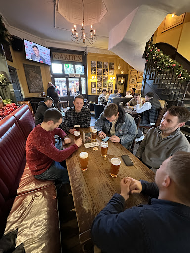 Ah, this pub—what an absolute masterpiece of British charm! The kind of place that effortlessly balances tradition and festive cheer, with garlands on the bannister, perfectly polished tables, and a television showing the muted drama of daytime news. It’s a venue that doesn’t just invite you in; it wraps you in a warm embrace of amber lighting and the promise of perfectly poured pints. The ambiance whispers of lively conversations, quiet contemplation, and memories waiting to be made. Truly, the pub deserves every accolade—it’s practically the standard against which all others should be judged.