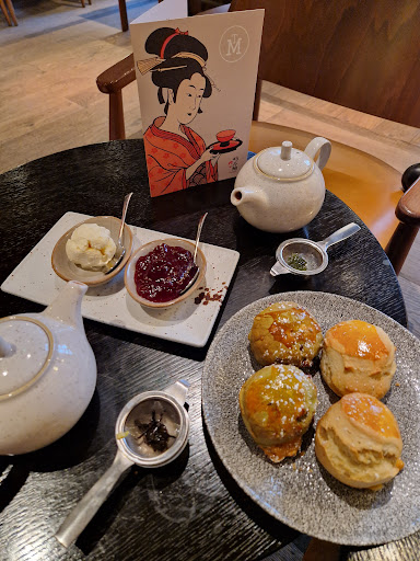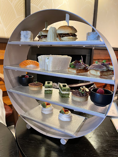 It felt very relaxing all around and the decor and walls gave it a very Japanese-esque feel to accompany our afternoon tea platter. This came with an abundance of treats from two savoury and three sweet tiers, followed by some warmly baked scones, clotted cream and jam. We were also able to pick from a selection of teaâs that were available on the menu.