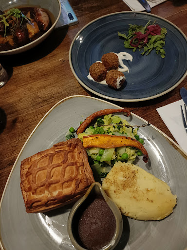 Read moreNice place to have drinks, they have a lovely alcohol and non-alcoholic range. The elderflower soda was very nice. Food was incredibly disappointing. They'd run out of roast dinner, which is something to bear in mind on a Sunday - our table was booked for 5pm so if wanting dinner, go earlier. The pie and its accompaniments were lovely but nothing special, but I really would not recommend the beef brisket "croquette" starter: I've had bigger falafel and stuffing balls, there's only three of them served on a plate that even the rocket looked embarrassed to be on, and as for the "brisket", well - I don't think a cow had even breathed near them, it could have been any generic filling, we literally thought it was falafel or some budget deep fried stuffing ball. We asked if we had the wrong dish, but were reassured that it wasn't. Whilst the atmosphere was nice, the staff (two different members of) started clearing our plates before all of our party had finished eating, which is incredibly rude. The women's toilets also had bits of toilet roll all over the floor and empty glasses in them, with two out of three stalls lacking toilet paper. Discovered two spare rolls on top of the radiator, but as it's situated underneath the dryers, they were a bit wet, which is off putting, and also nowhere to put them in the cubicle except on top of sanitary bins or the floor, which isn't...