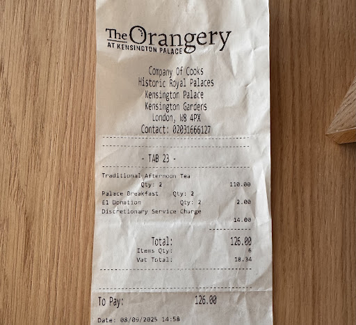 The baroque Orangery, located next to Kensington Palace in Kensington Gardens, was built in 1704โ05 for Queen Anne as an orangery for her citrus trees. The Orangery is enclosed by stunning grounds with views of the palace beyond and features a magnificent south-facing terrace. The Orangery offers an extensive seasonal menu. Today for breakfast I ordered a mushroom omelette, which makes for a delightful and wholesome breakfast option that is both nutritious and satisfying. I really enjoyed this protein-packed, flavorful breakfast.To drink I ordered loose leaf English breakfast tea. It is a classic blend that offers a robust and full-bodied flavor, making it an ideal choice for starting the day. Unlike tea bags, loose leaf tea allows the leaves to expand fully during steeping, which enhances the infusion process and results in a richer, more complex taste. Typically comprising a mixture of Assam, Ceylon, and Kenyan black teas, this blend is known for its malty, brisk, and slightly citrusy notes. It's often enjoyed with milk and sugar, but its bold flavor can also be appreciated on its own. English tea prepared with traditional method, which involves using a tea infuser or a teapot, not only elevates the drinking experience but also pays homage to the timeless art of tea making. Overall it was a satisfying meal with a balance of flavours that worked well together. Trying a traditional British breakfast at the Orangery can be a delightful experience for your taste buds and a fascinating journey into British culinary culture. Additionally, pairing it with a cup of strong British tea can enhance your breakfast experience. Later, after visiting the Kensington Palace and gardens, I went to the Orangery again, this time to enjoy the afternoon tea ceremony. English afternoon tea is a delightful and quintessentially British tradition that dates back to the early 19th century. Typically served between 3:30 and 5 PM, it was introduced by Anna, the Duchess of Bedford. English afternoon tea ceremony usually includes a pot of freshly brewed tea, often served with a selection of delicate sandwiches, scones with clotted cream and jam, and an assortment of pastries and cakes. The sandwiches are often filled with classic combinations like cucumber, egg and cress, smoked salmon, or ham and mustard. I really enjoyed the selection of delicate, savoury sandwiches on the bottom tier. In particular, the open English sandwich with salmon roses was very tasty. The coronation chicken finger roll was also interesting. The middle tier is reserved for scones, which are accompanied by cream and strawberry jam, providing the perfect combination of texture and rich flavours. The upper tier is the crowning glory, decorated with an array of sweet pastries and miniature cakes, including Victoria sponge cake, cream cupcakes, chocolate ganache and choux pastry covered in orange icing to resemble the half-orange fruit from the Queen Anne's Orangery. The ritual of afternoon tea is not just about the food, but also about the experienceโit encourages relaxation, conversation, and a moment of indulgence in the middle of the day. Exploring this culinary tradition can give you a deeper appreciation for British culture and its emphasis on hearty, comforting meals to start the day.