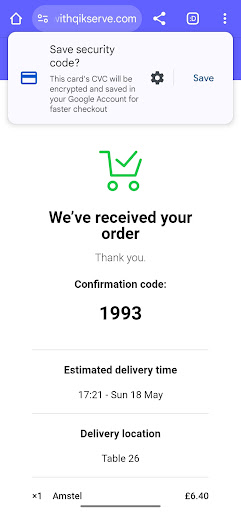 It was a rather weird experience yesterday when I ordered my beer through the link found on the QR code on the menu. My beer 🍺 was not arriving and my friends were half way through their drinks that they ordered at the bar. I went to the bar to inquire when my beer was going to come (or just collect it myself if easier) and I was being questioned by the bar tender how I ordered it as they don't have an online system. Well...I started doubting myself that perhaps I ordered for another pub or something. So I showed her my screenshot (also putting it in here) and the QR code on their menu that I used...she looked so confused ...so I showed her how it worked. Then she still treated me as if I wanted to rob her out of a beer and asked me for an email confirmation which apparently I should have. I checked and I had that too. So only then she confirmed with her colleague that the beer was on its way...after all this gaslighting. Very unprofessional and the beer arrived around 15 min. from ordering. Wetherspoons at its busiest does it 10 times faster and without gaslighting.