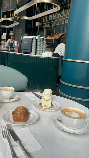 Read moreWe stopped by this café just before the afternoon for a quick coffee with my son during my stay in London. The interior is beautifully designed: elegant, refined, and modern. It’s both a café and a boutique, offering a thoughtful selection of treats to take home: artisanal chocolates, cookies, pastries, fine tea blends, specialty coffee beans, and Peninsula Champagne.